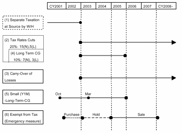 | (5) | Extend the application of special tax exemption for small - long-term - capital gain (up to Y1Million)of listed stocks until end CY 2005 (currently end March 2003). |