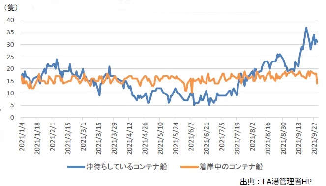 「ロサンゼルス港の滞船状況」下部のグラフ