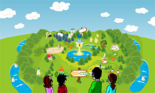 「さあ着いたぞ。ここが、はっぴぃ★タウンだ!」