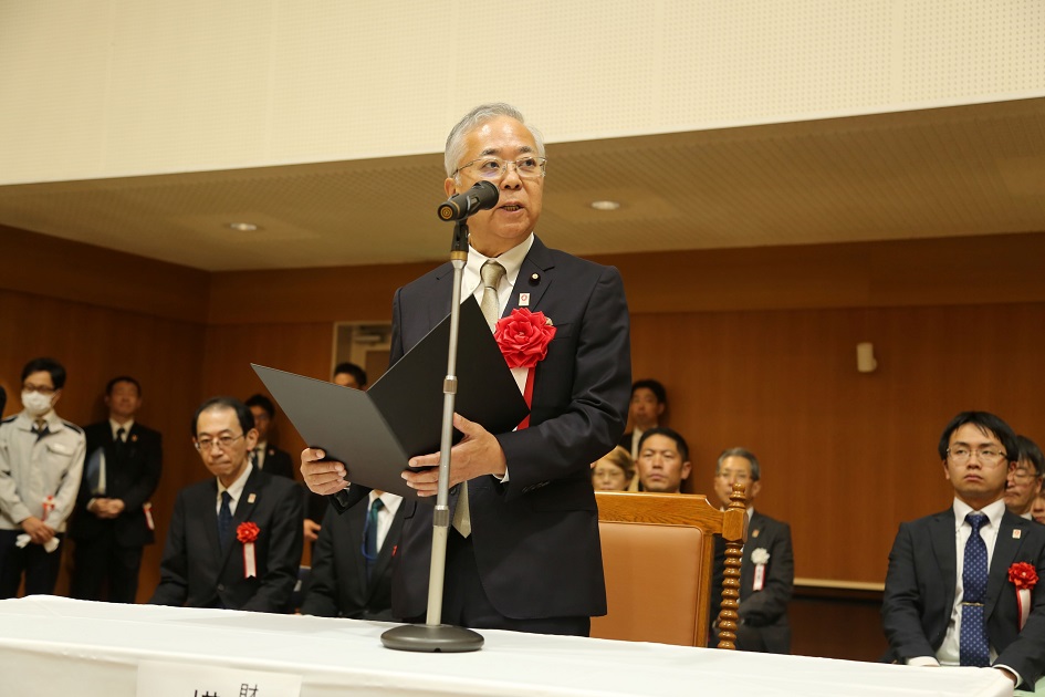 執行確認結果宣言をする横山財務副大臣