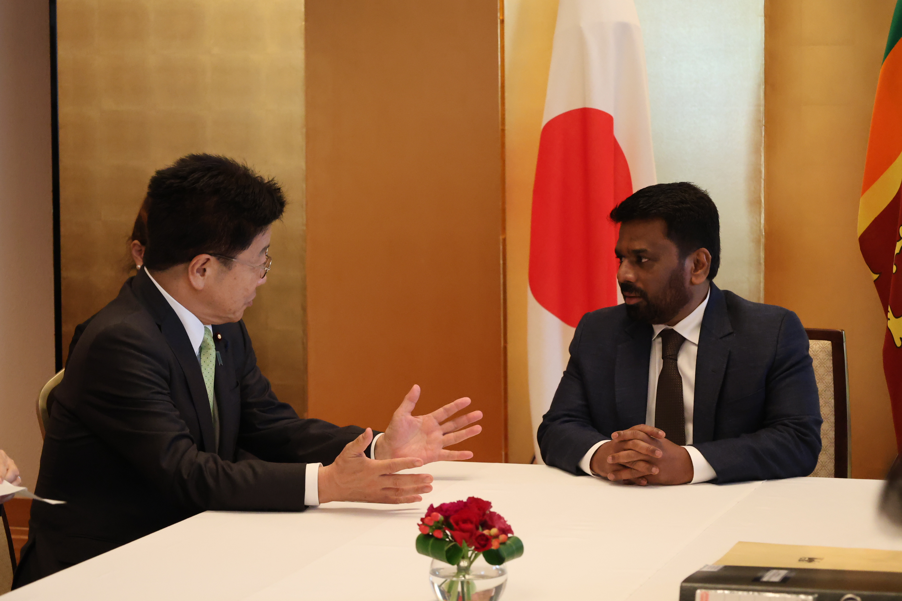 令和7年9月29日(月)、加藤勝信財務大臣兼金融担当大臣は、2025年日本国際博覧会(大阪・関西万博)に参加するため訪日中のアヌラ・クマーラ・ディサナヤケ大統領兼財務大臣と面会し、スリランカの経済情勢や債務再編の進捗、二国間の協力等について率直な意見交換を行いました。