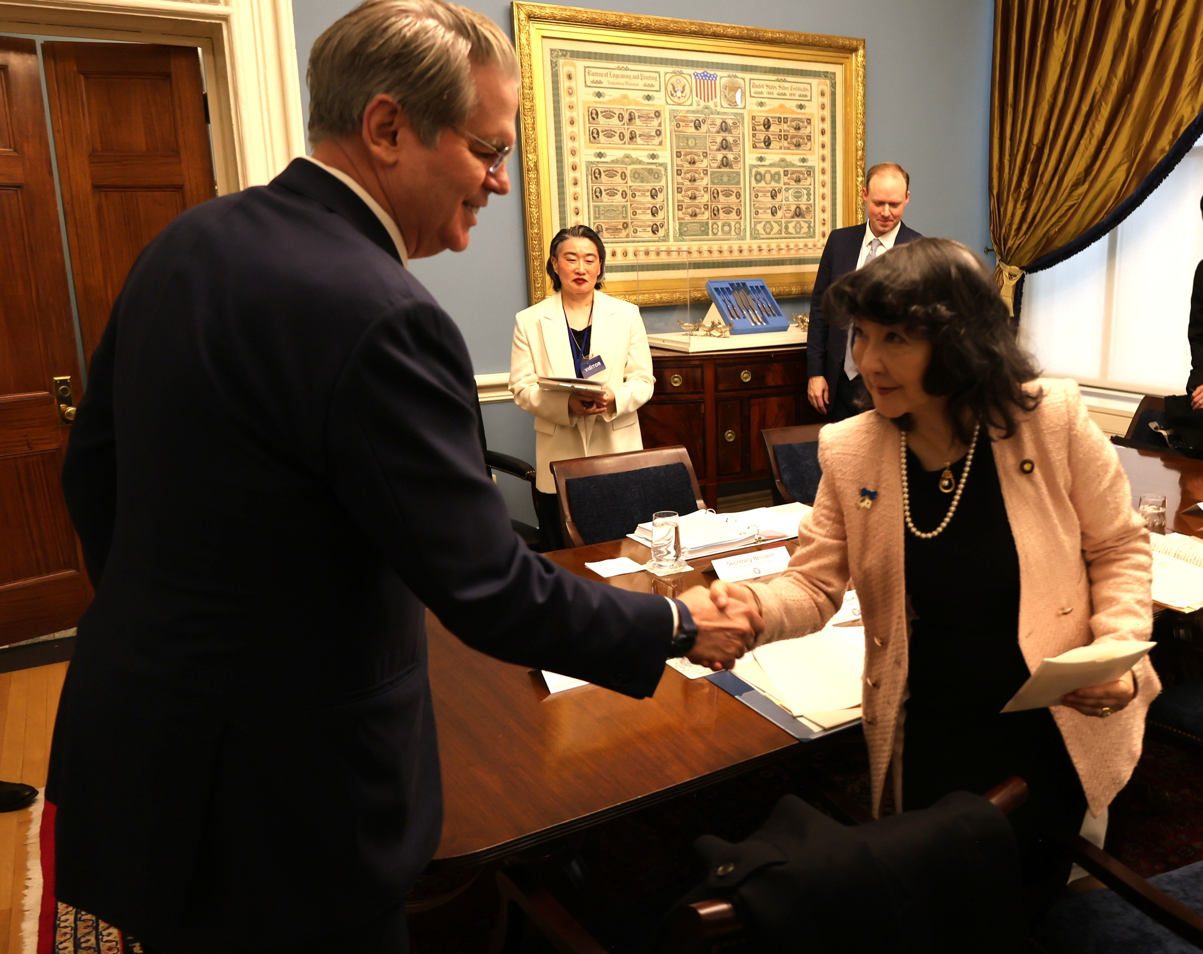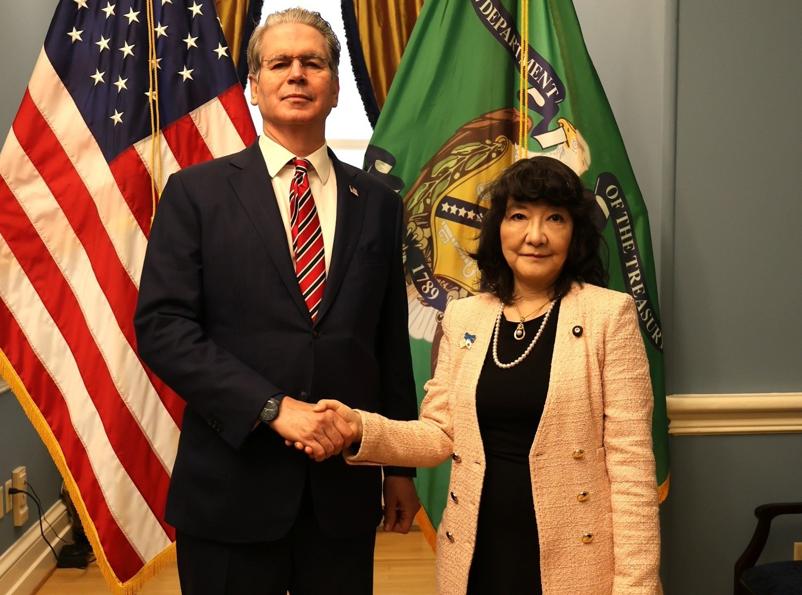 令和8年1月12日(月)、片山大臣は、米国ワシントンD.C.において、スコット・ベッセント米国財務長官と会談を行いました。両大臣は、世界経済の幅広い課題や、足元の為替動向を始め市場の動向に関して意見交換を行いました。また、両大臣は、二国間や多数国間の諸課題に対処するため、両国間の協力をさらに強化していくことを再確認しました。