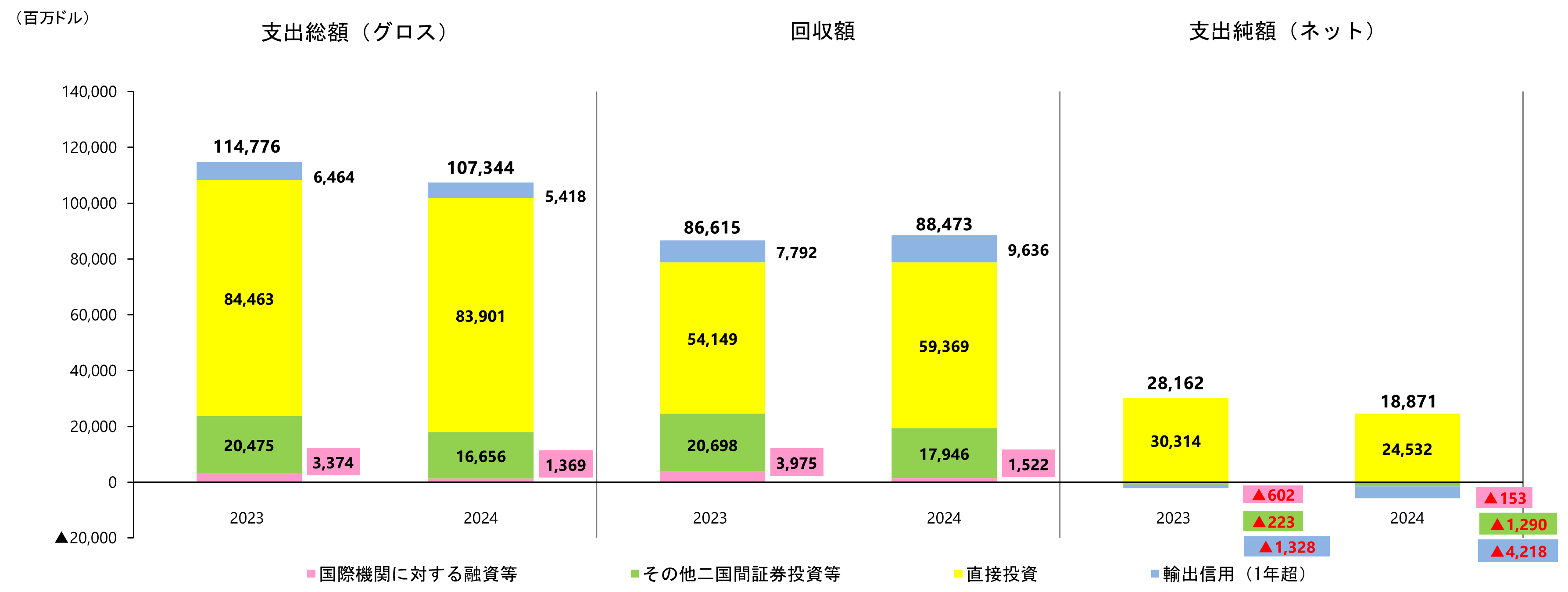 支出総額(グロス)支出総額は107,344百万ドルとなり、前年に比べ7,432百万ドルの減少となりました(対前年比6.5%減)。