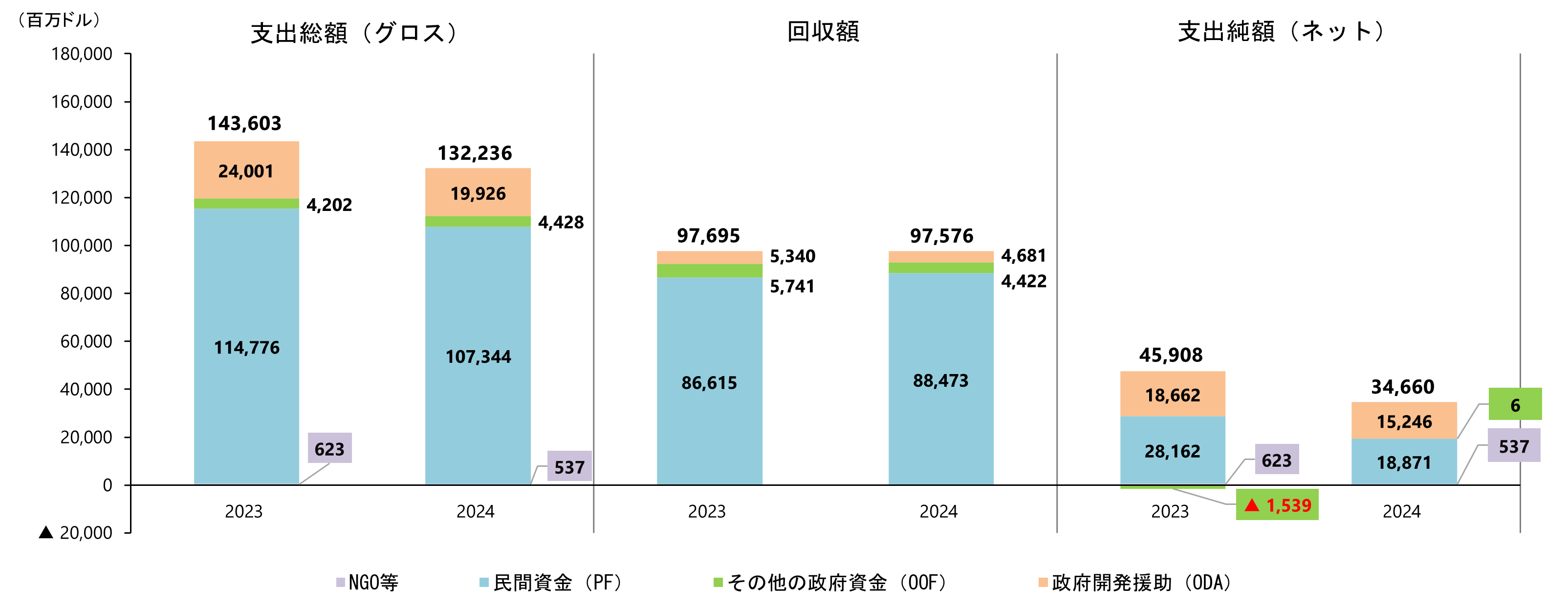 支出純額(ネット)支出純額は34,660百万ドルとなり、前年に比べ11,248百万ドルの減少となりました。