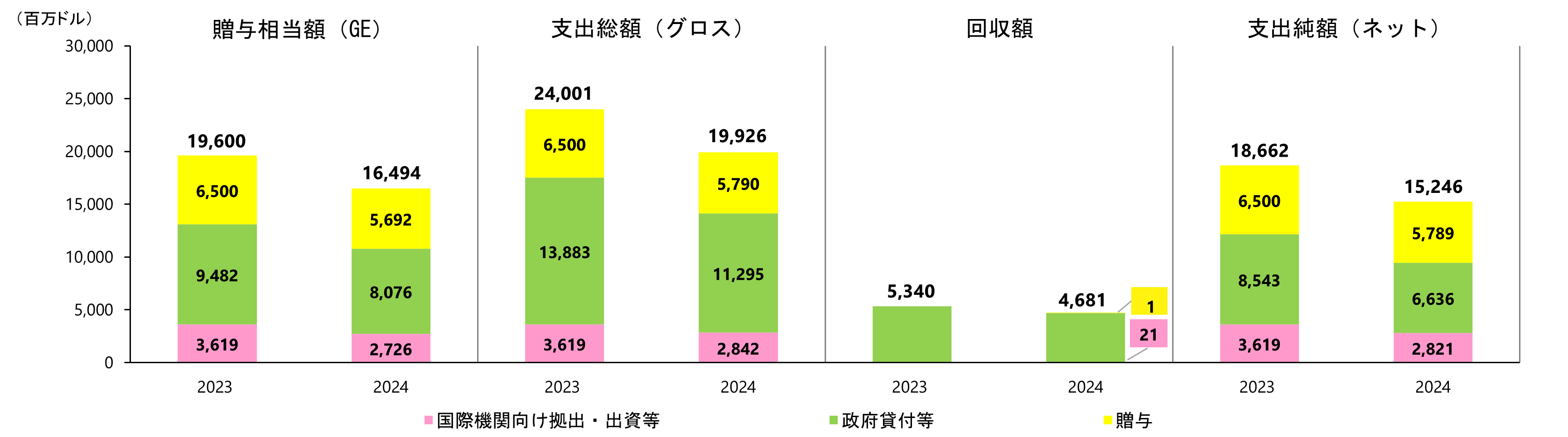 贈与相当額は16,494百万ドルとなり、前年に比べ3,107百万ドルの減少となりました(対前年比15.9%減)。