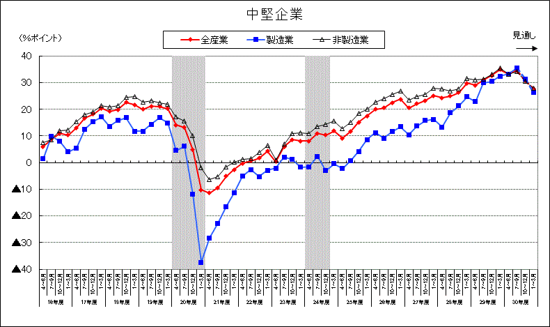 | 中堅企業 | 全産業 | 33.1 | (28.6) 34.4 |